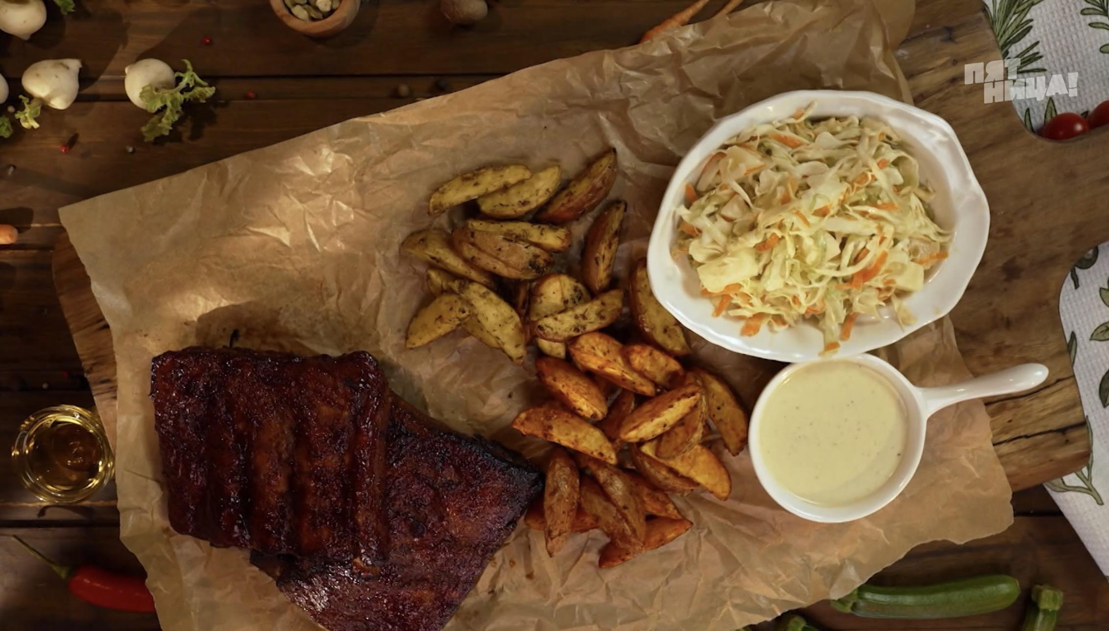 На суд жюри были представлены рёбра в соусе барбекю с черносливом, гарнир из картофеля и салат коул-слоу.