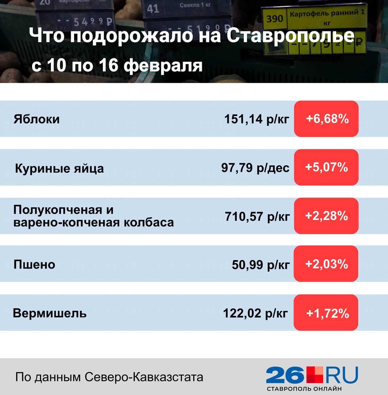 По данным Северо-Кавказстата, за прошедшую неделю в Ставропольском крае продолжился рост цен на продукты питания.