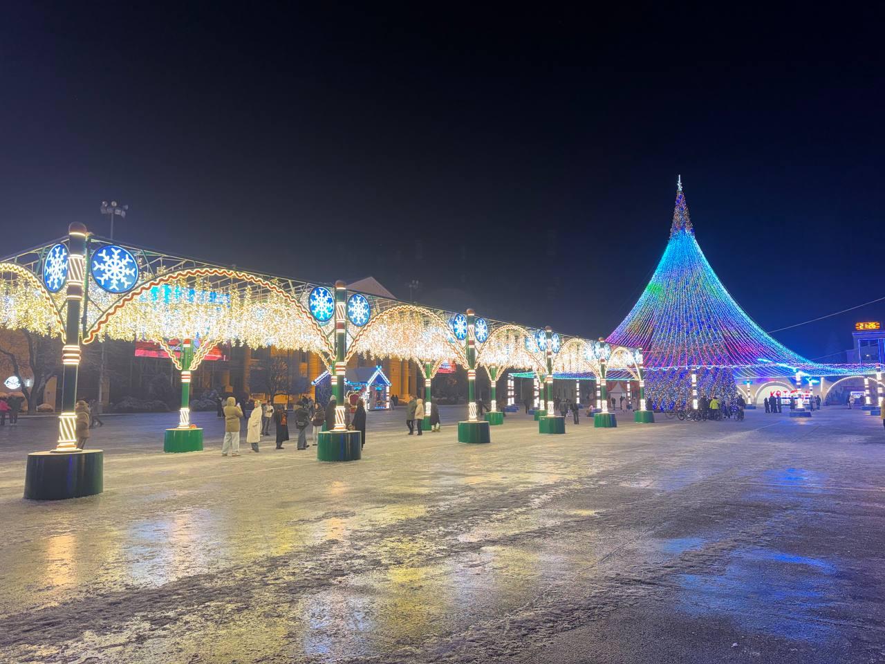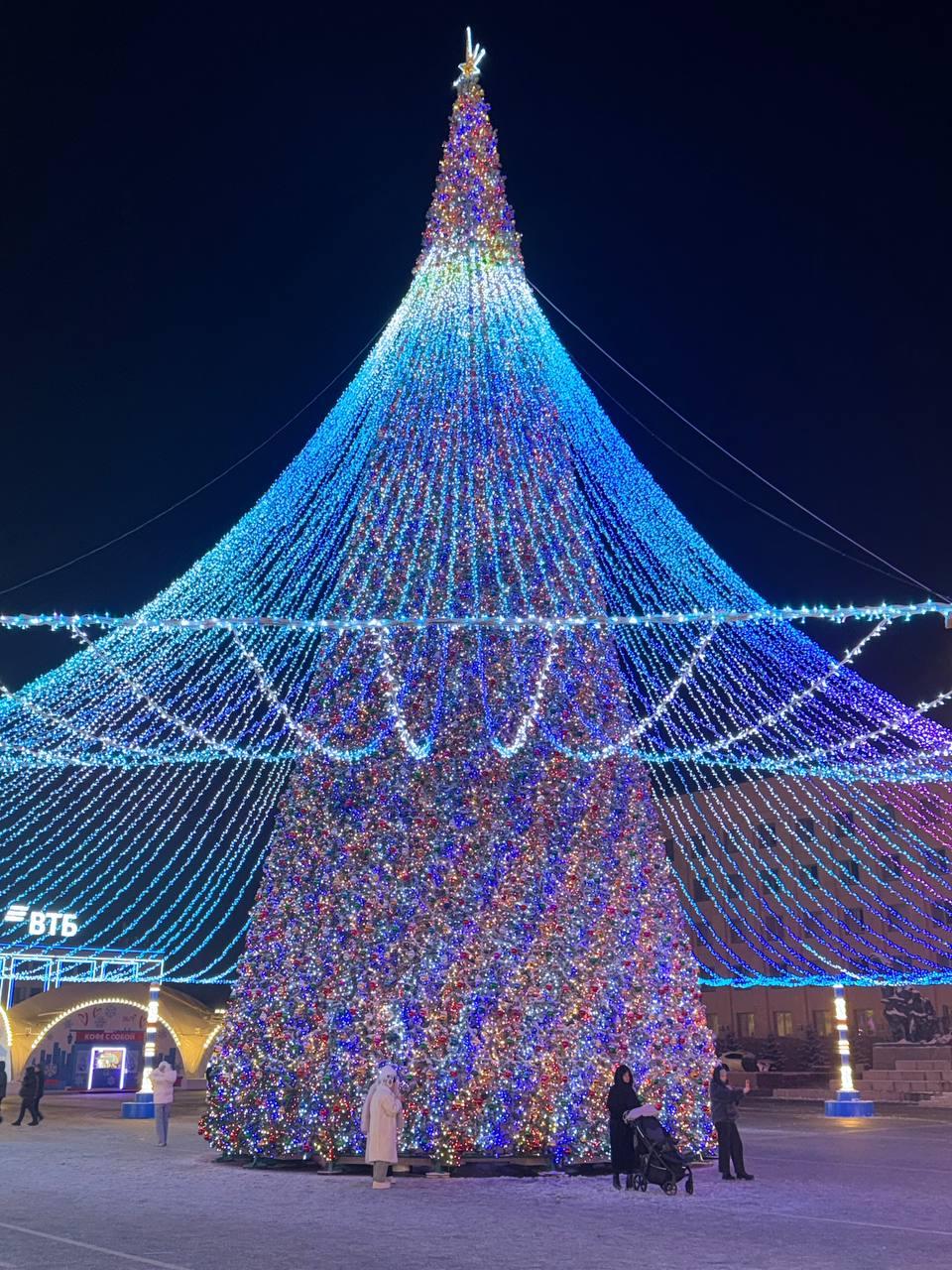 Главную городскую ёлку торжественно открыли 19 декабря. К этому дню монтаж всех праздничных украшений уже завершили. Теперь площадь Ленина мерцает огнями, которые видны на considerable расстоянии.