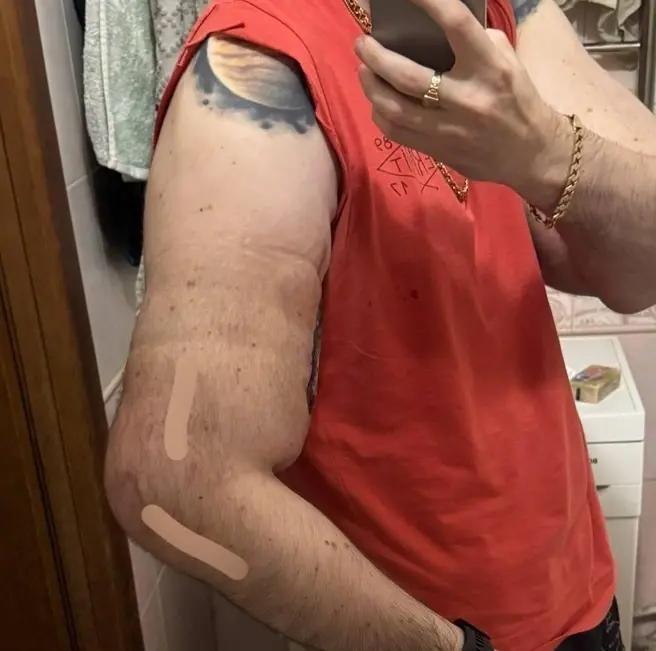 Операция по пересадке кожи, судя по всему, прошла успешно. Руки-Базуки делится фотографиями бицепса, на открытую рану которого пришили новый кожный лоскут. Сейчас идёт реабилитация.