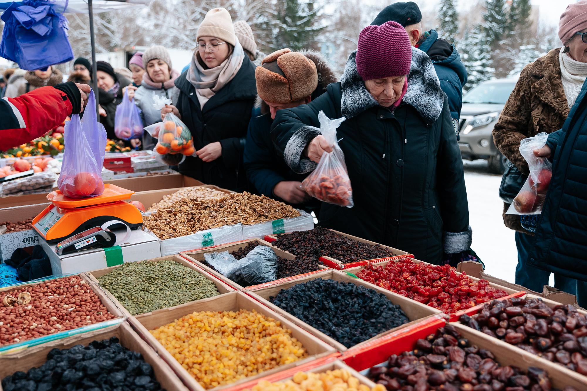 Гости и жители города найдут здесь разнообразные продукты: овощи, фрукты, молочные и мясные изделия, орехи, мёд и многое другое.