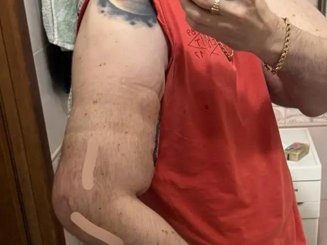 Недавно в соцсетях он сообщил о новой операции. В ходе неё кожу пересадили с правого бицепса на левый.