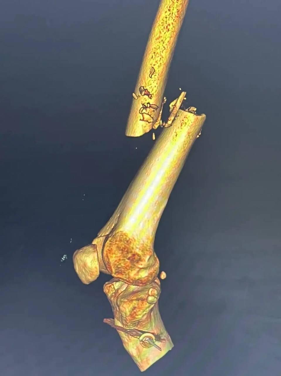 Обследование выявило крайне серьезные травмы: закрытый оскольчатый перелом левой бедренной кости и травматическую ампутацию левой голени.