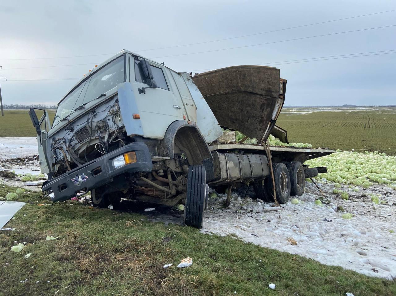 Авария произошла утром 8 февраля примерно в 08:15 на 23-м километре автодороги Дивное – Большая Джалга – Красочный. По информации Госавтоинспекции Ставропольского края, 51-летний водитель КАМАЗа допустил нарушение скоростного режима, потерял контроль над автомобилем и выехал за пределы проезжей части.