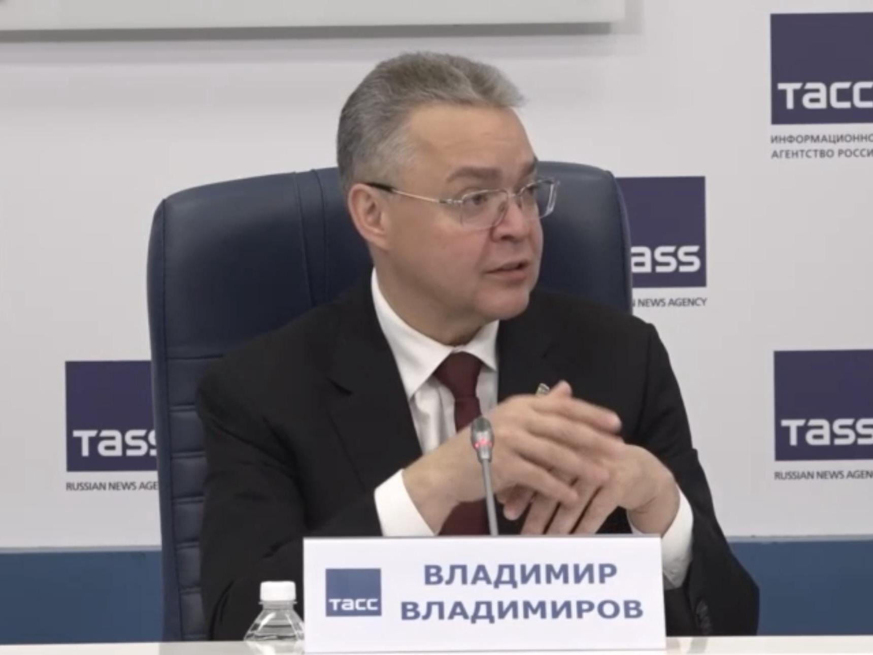 Кадр с пресс-конференции губернатора Ставропольского края Владимира Владимирова.