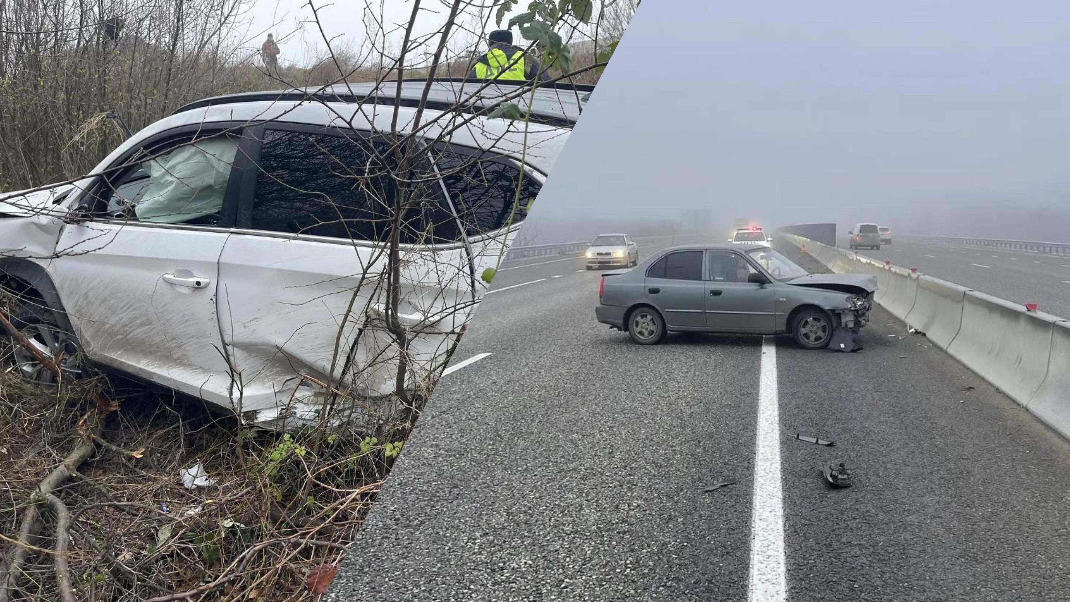 Два Hyundai врезались в бетон на трассе Минеральные Воды — Кисловодск