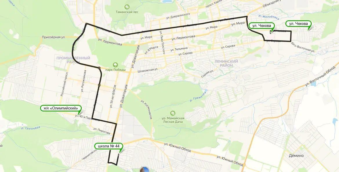 Маршрут пролегает от школы №44 до улицы Чехова