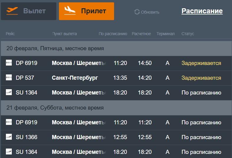 Задержанные рейсы, следующие на прилёт